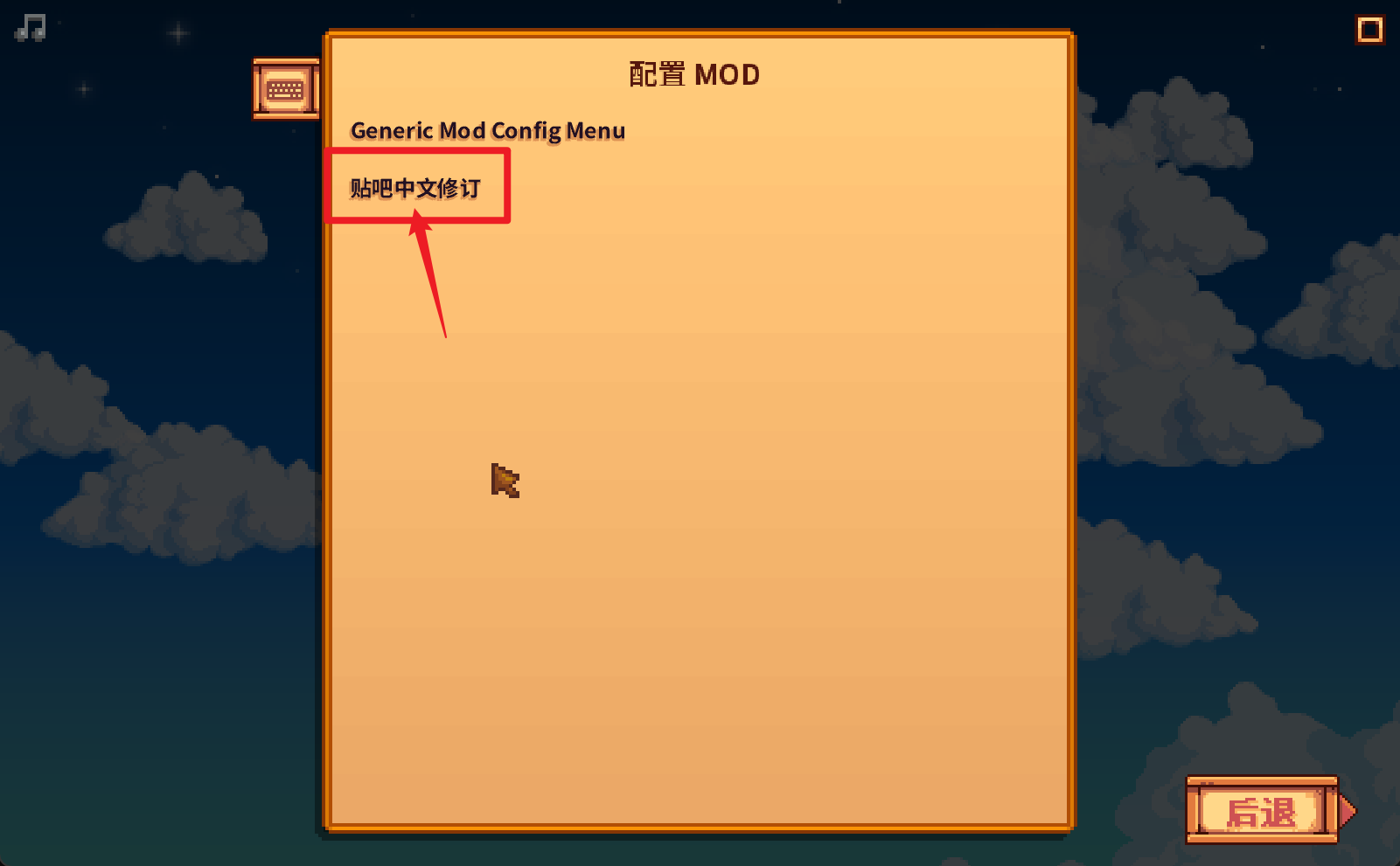 2. 进入配置菜单后,这里会列出所有配置菜单 MOD 支持配置的已安装 MOD,点击我们的贴吧中文修订来打开它的配置菜单。